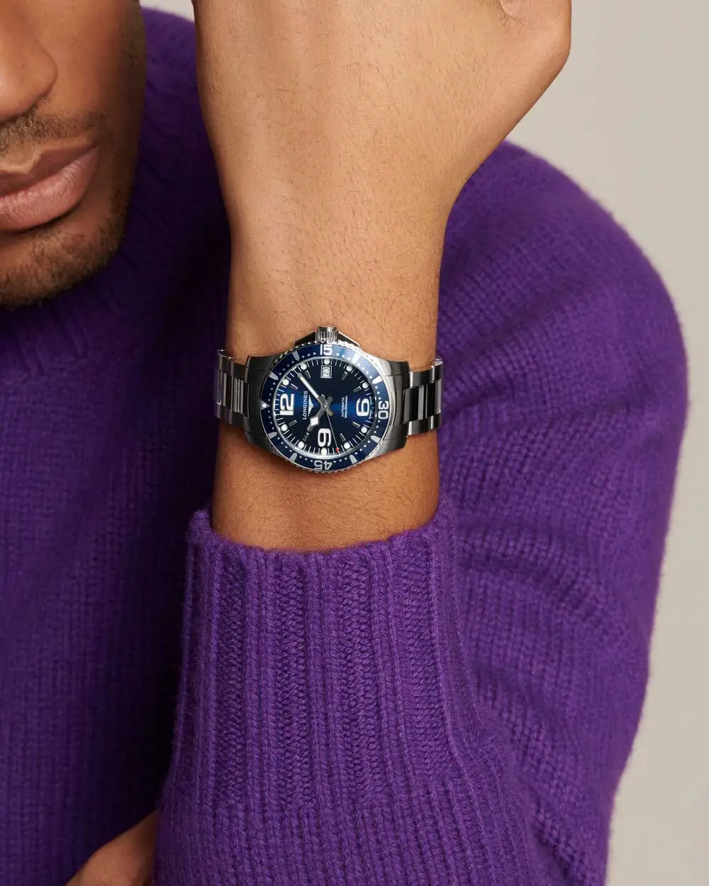 Im Inneren arbeitet das Automatikwerk Kaliber L888 mit einer Gangreserve von 72 Stunden, das Präzision und Zuverlässigkeit bietet. Abgerundet wird die Uhr durch ein Edelstahlarmband mit doppelter Sicherheitsfaltschließe, das Komfort und Sicherheit verbindet. Dieses Modell verkörpert die DNA der HydroConquest-Kollektion – Leistung, Widerstandsfähigkeit und Schweizer Uhrmacherkunst.