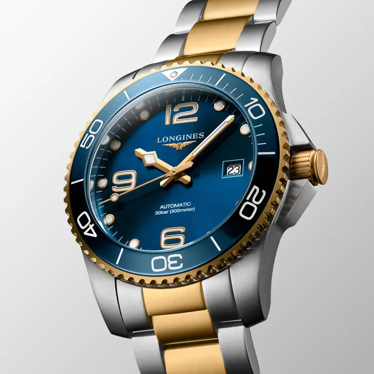 Das zweifarbige Armband aus Edelstahl und gelbgoldener PVD-Beschichtung verleiht dem Modell eine luxuriöse Note und ist mit einer Faltschließe für sicheren und bequemen Tragekomfort ausgestattet. Die Longines HydroConquest L3.781.3.96.7 ist die perfekte Wahl für Männer, die sportliche Robustheit, Eleganz und zeitlosen Stil kombinieren möchten.