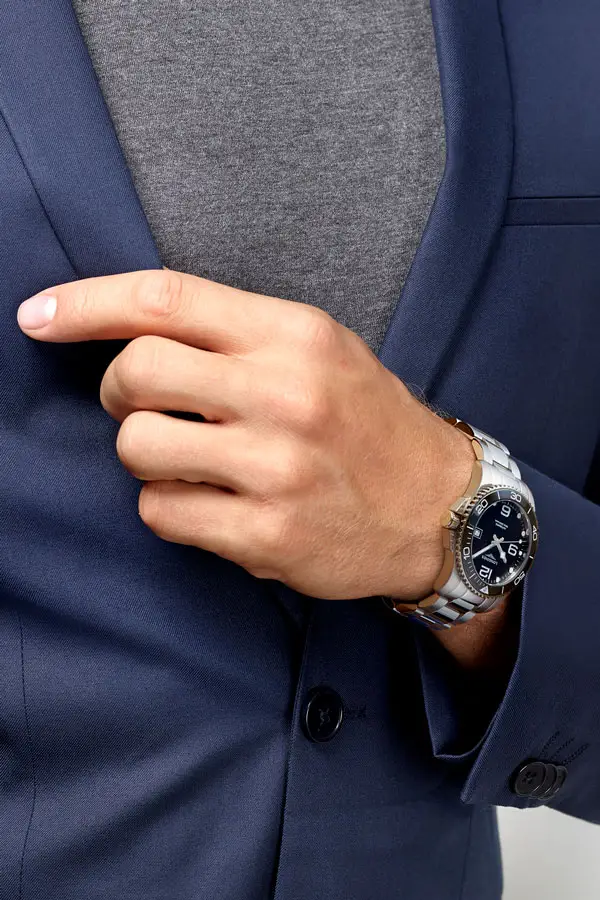Ein massives Edelstahlarmband im eleganten Silberton mit Faltschließe sorgt für sicheren und angenehmen Tragekomfort. Dieses Modell ist die perfekte Kombination aus technischer Spitzenleistung und der klassischen Longines-Ästhetik – für jede Situation, ob an Land oder unter Wasser.