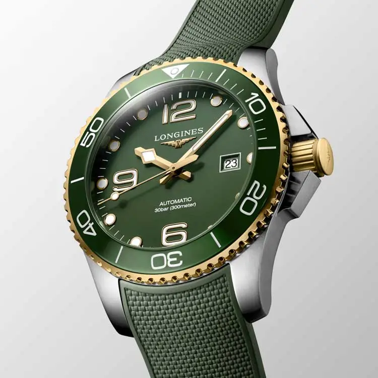 Dank einer Wasserdichtigkeit von 30 ATM (300 Meter) eignet sich dieses Modell ideal für professionelles und Freizeit-Tauchen. Das grüne Kautschukarmband mit Faltschließe sorgt für hohen Tragekomfort und Feuchtigkeitsresistenz. Die Longines HydroConquest L3.782.3.06.9 ist die perfekte Wahl für Männer, die Sportlichkeit, Stil und Schweizer Präzision verbinden möchten.