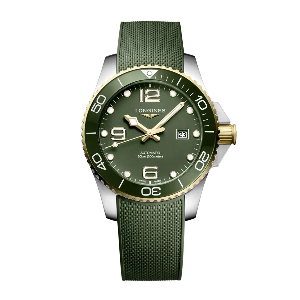 Die Longines HydroConquest L3.782.3.06.9 ist eine robuste und stilvolle Taucheruhr, die nicht nur mit ihren technischen Eigenschaften, sondern auch mit ihrem modernen sportlichen Design in einem attraktiven Grünton überzeugt. Ideal für Männer, die Zuverlässigkeit, Widerstandsfähigkeit und ein starkes ästhetisches Statement schätzen.