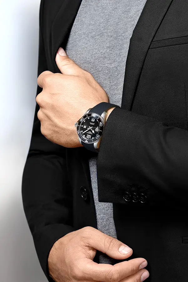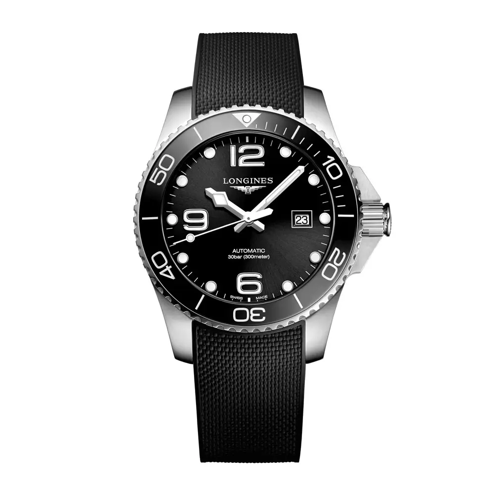 Im Inneren arbeitet das Automatikwerk Kaliber L888 mit einer Gangreserve von 72 Stunden, das Präzision und Zuverlässigkeit garantiert. Abgerundet wird die Uhr durch ein schwarzes Kautschukarmband mit doppelter Sicherheitsfaltschließe, das Komfort und Sicherheit vereint. Dieses Modell verkörpert die DNA der HydroConquest-Kollektion – Leistung, Widerstandsfähigkeit und Schweizer Uhrmacherkunst.