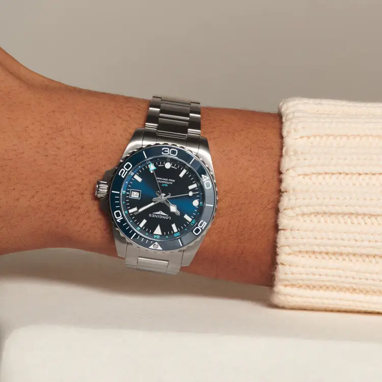 Am Handgelenk überzeugt die Uhr mit einem Edelstahlarmband mit Faltschließe, doppelter Sicherheitsfalte und Mikro-Feineinstellung. Die HydroConquest GMT L3.790.4.96.6 ist die perfekte Wahl für Reisende, die Schweizer Präzision, technische Innovation und Zuverlässigkeit unter Wasser wie an Land suchen.