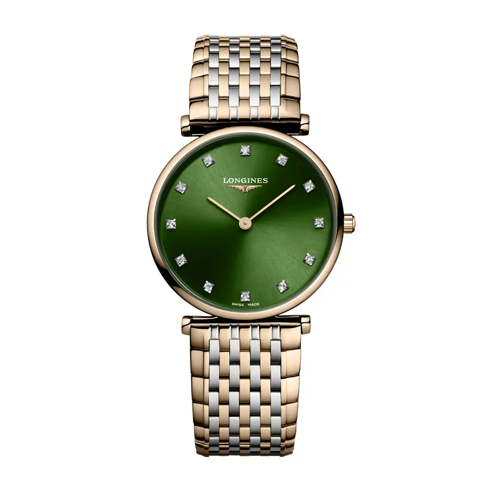 Im Inneren arbeitet das zuverlässige Quarzkaliber L420, das Schweizer Präzision und sorglose Nutzung garantiert. Abgerundet wird das Modell durch ein Edelstahlarmband mit roter PVD-Beschichtung und dreifacher Sicherheitsfaltschließe, die Komfort und Sicherheit gewährleistet. Eine Uhr, die die Philosophie von Longines – Tradition, Anmut und Liebe zum Detail – perfekt widerspiegelt.