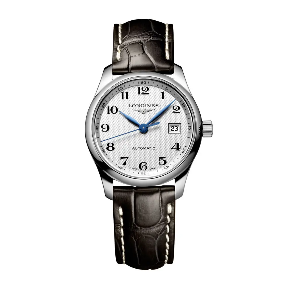 Im Inneren arbeitet das Automatik-Kaliber L592 mit einer Gangreserve von 45 Stunden, das Präzision und Zuverlässigkeit garantiert. Mit 30 m (3 ATM) Wasserdichtigkeit und einem braunen Alligatorlederarmband mit Dreifach-Sicherheitsfaltschließe verkörpert dieses Modell die zeitlose Eleganz der Damen-Longines Master Collection.