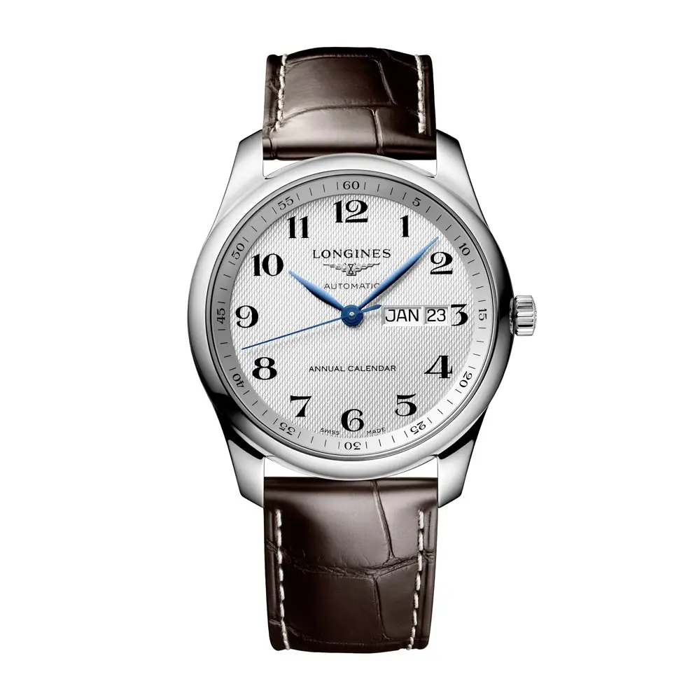 Die Longines Master Collection L2.910.4.78.3 verkörpert die raffinierte Eleganz, die für diese prestigeträchtige Longines-Linie typisch ist. Das runde 40 mm Gehäuse aus Edelstahl ist mit einem klassischen silbernen Zifferblatt mit feiner Körnung und blauen Zeigern ausgestattet, die dem Modell einen unverwechselbaren Charakter verleihen. Abgerundet wird der zeitlose Look durch ein braunes Alligatorlederarmband mit Faltschließe, das Tragekomfort und Sicherheit bietet.
