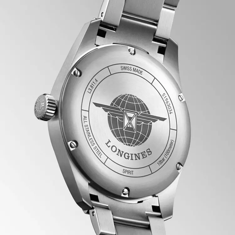 Die Uhr ist bis 100 Meter (10 bar) wasserdicht und wird an einem Edelstahlarmband mit dreifacher Sicherheitsfaltschließe getragen. Die Longines Spirit L3.811.4.73.6 ist die ideale Wahl für alle, die eine Kombination aus Robustheit, Präzision und luxuriösem Stil suchen.