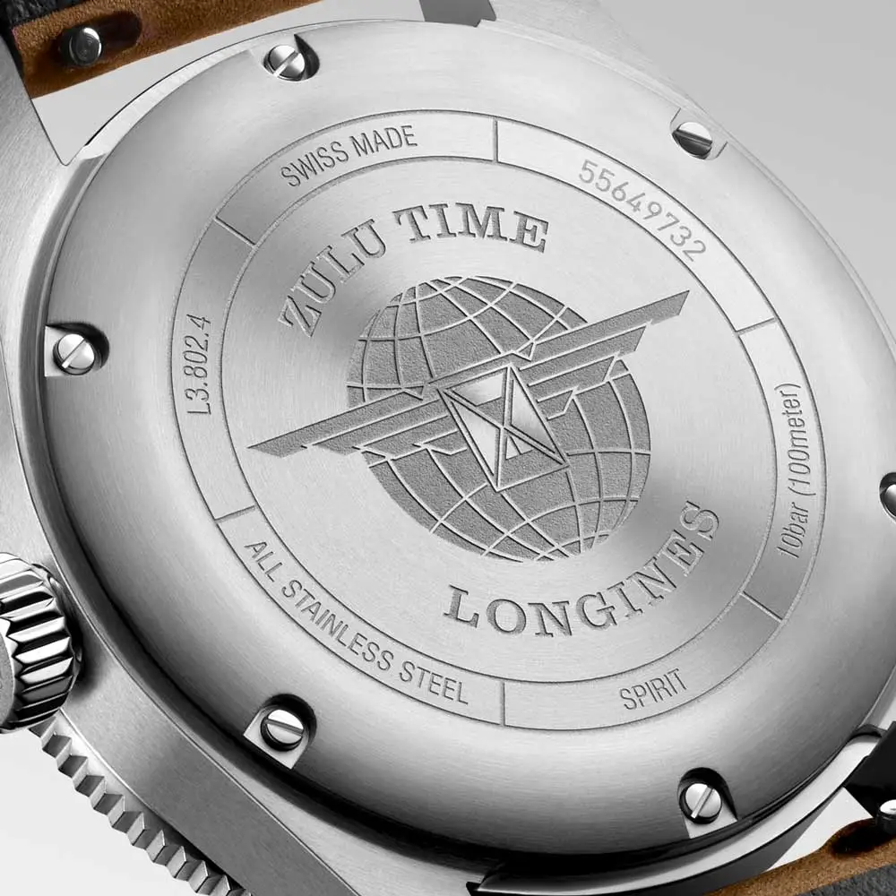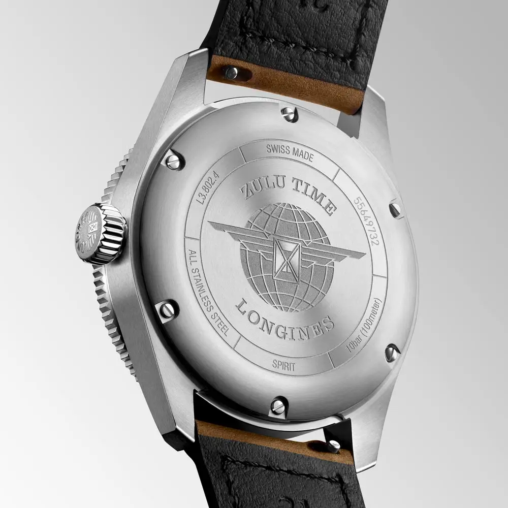 Die Uhr ist bis 100 Meter (10 bar) wasserdicht und wird an einem Lederarmband mit mikroverstellbarer Faltschließe getragen. Die Longines Spirit Zulu Time L3.802.4.63.2 ist der ideale Begleiter für alle, die eine zuverlässige GMT-Uhr im kompakten Format suchen.