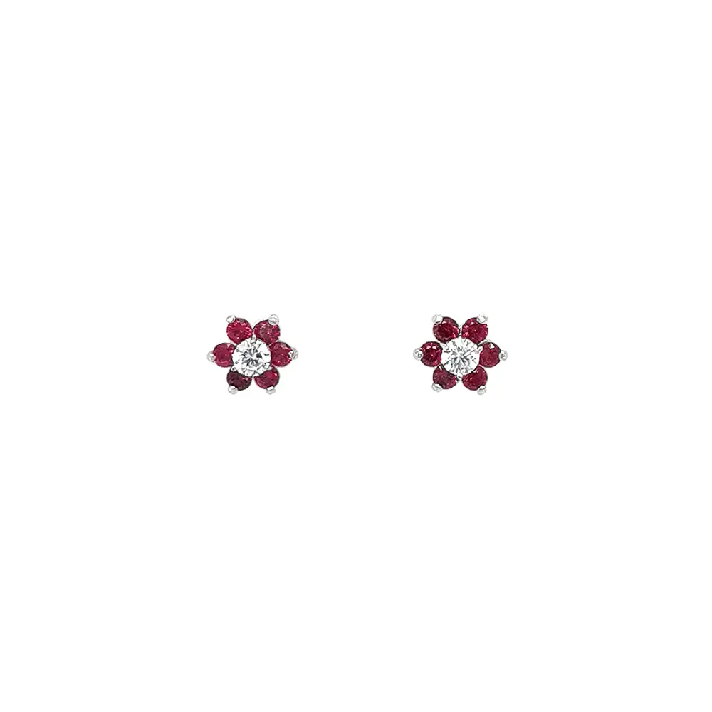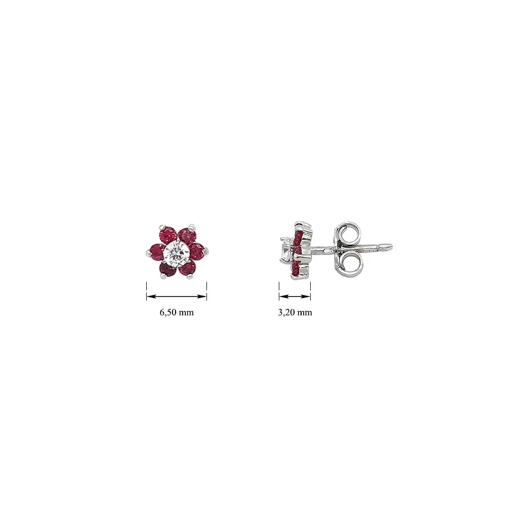 Luxuriöse florale Ohrringe mit Rubinen und klaren Edelsteinen verziert