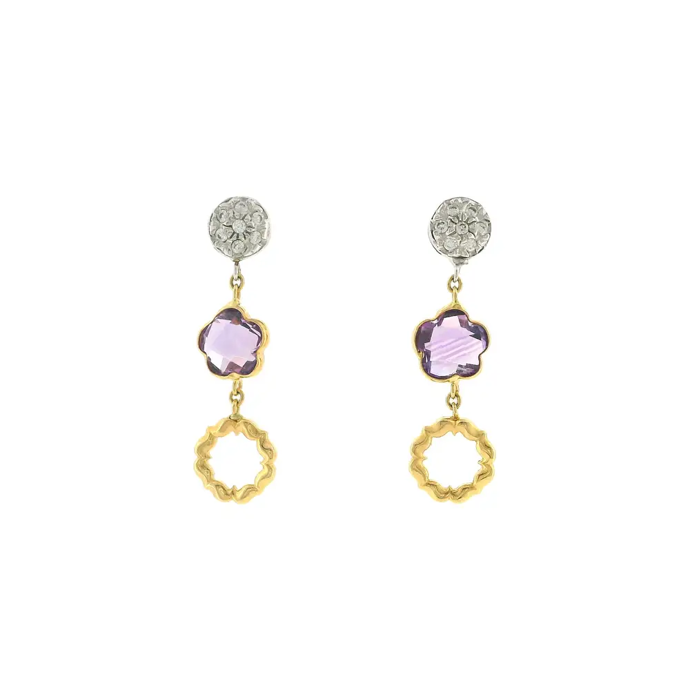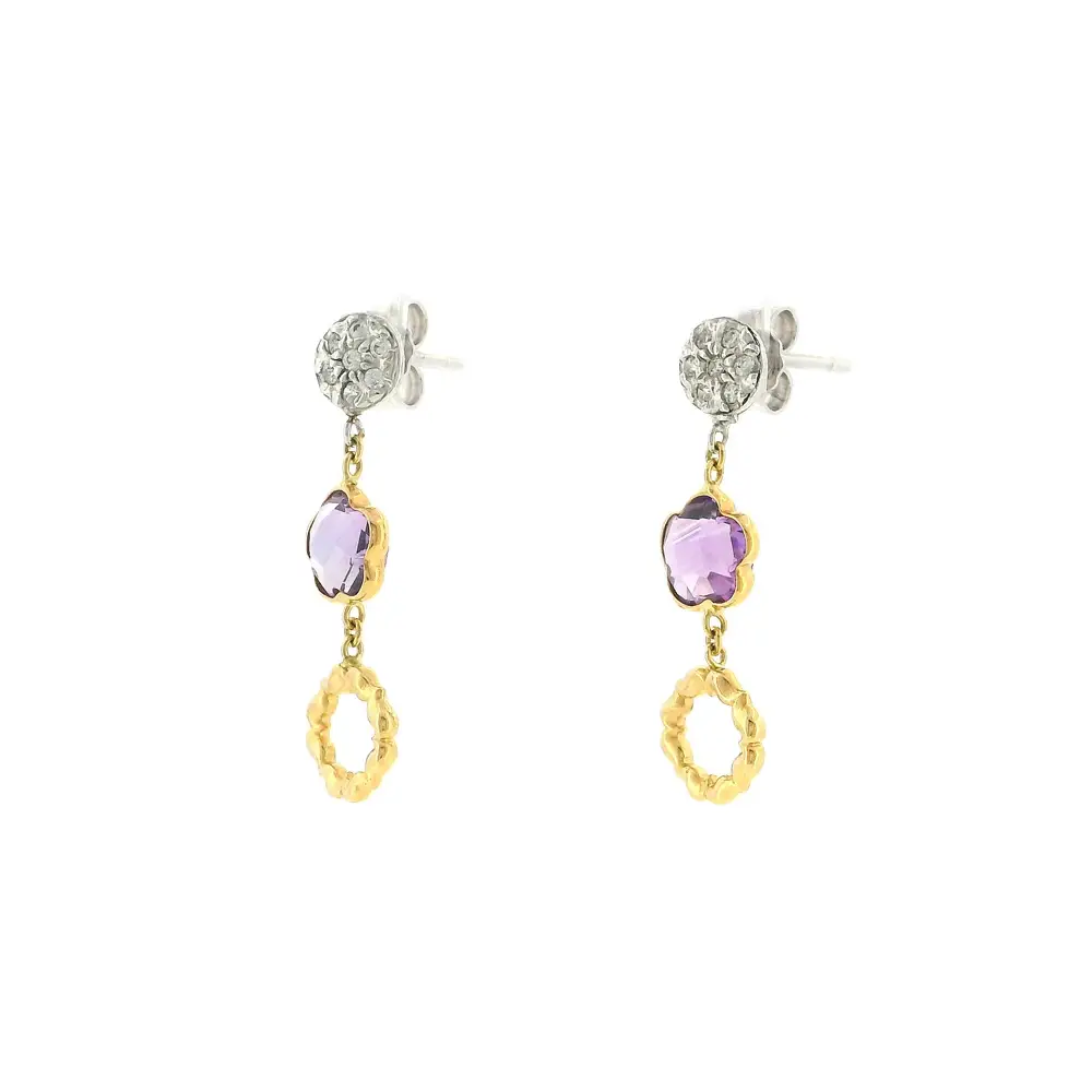 Luxuriöse Goldohrringe mit Amethyst und feinen Zirkonen
