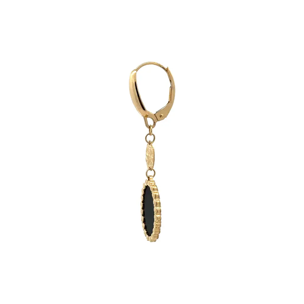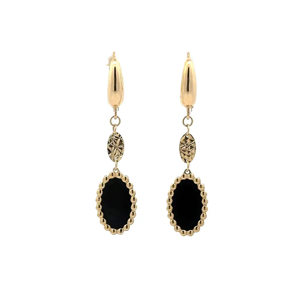 Luxuriöse Goldohrringe mit ovalem schwarzem Stein und zarten Details