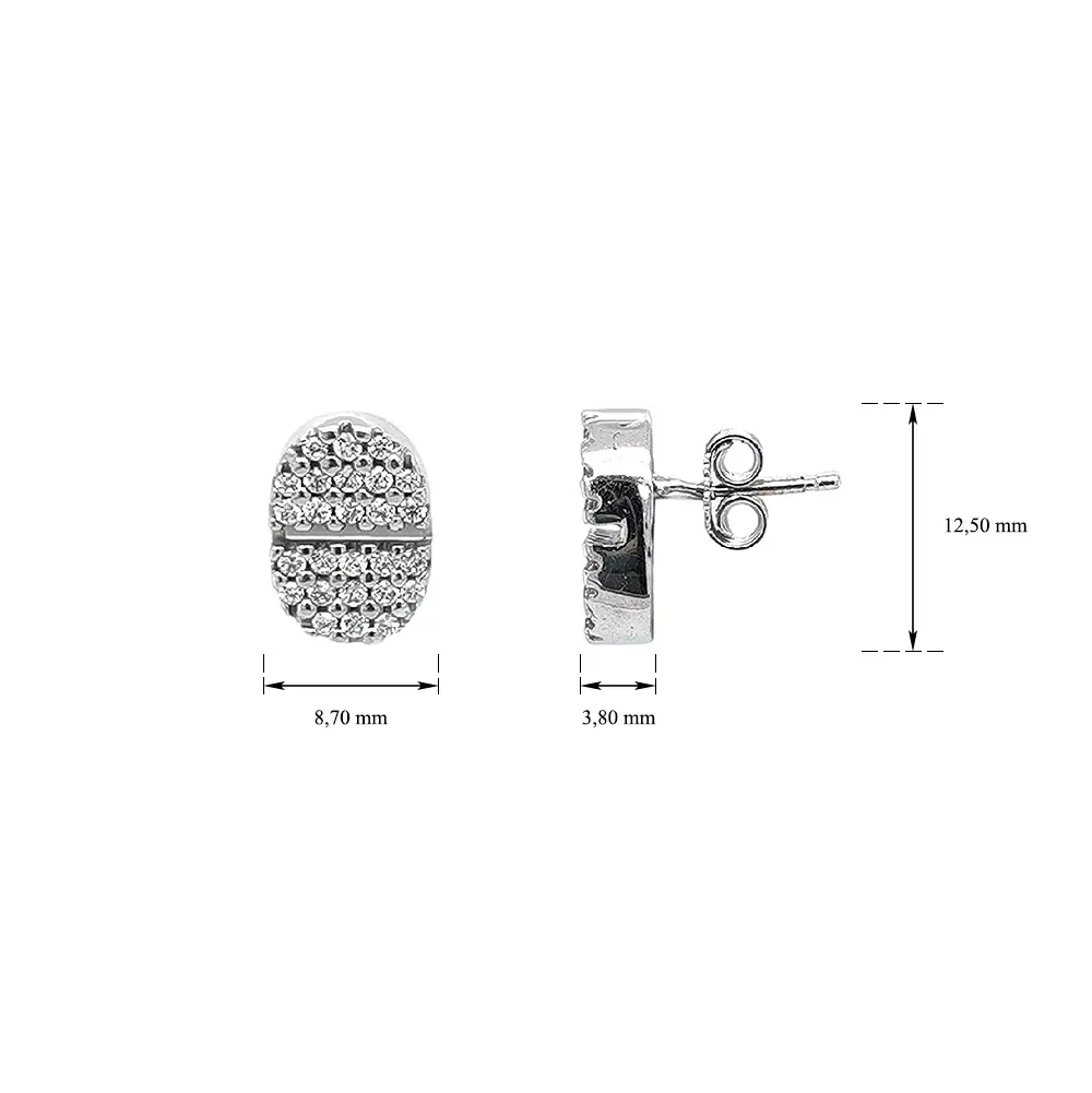 Luxuriöse ovale Ohrringe aus Weißgold mit glänzenden Zirkonen