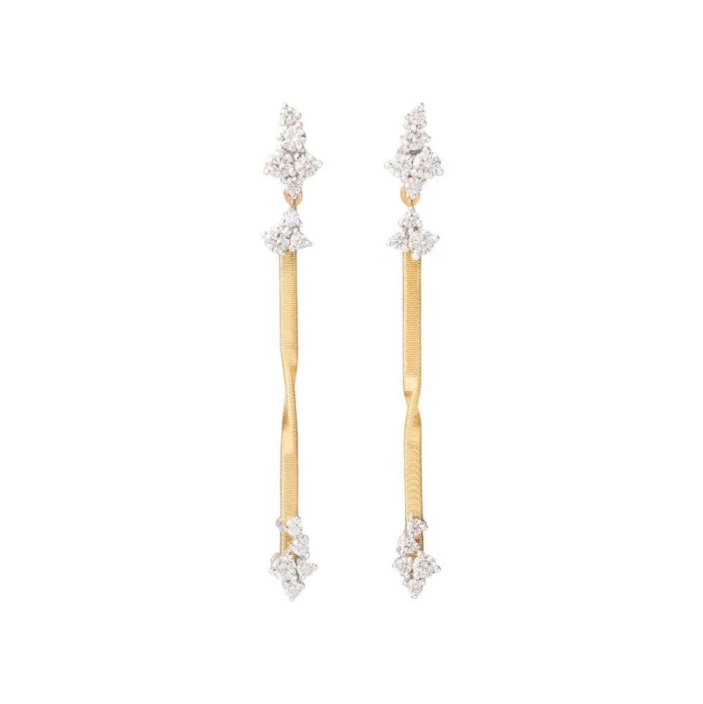 Die Marco Bicego Marrakech OG420 B YW M5 Ohrringe verkörpern eine elegante Interpretation der Marrakech Kollektion, in der ornamental inspirierte Formen auf italienische Goldschmiedekunst treffen. Die Drop-Silhouette aus 18K Gelbgold zeigt sanft gedrehte Stränge, die für Bewegung und Textur sorgen – ein charakteristisches Merkmal dieser Linie.