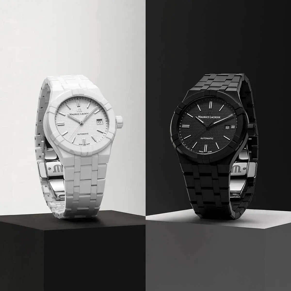 Aikon ist die Flaggschiff-Kollektion von Maurice Lacroix und verkörpert moderne sportliche Eleganz mit einer unverwechselbaren visuellen Identität. Sie ist vom ikonischen Modell Calypso aus den 1990er-Jahren inspiriert, wurde aber in einer zeitgemässen Form neu interpretiert, die sich durch klare Linien, architektonisches Design und ein integriertes Armband - eines der Hauptmerkmale der Kollektion - auszeichnet.