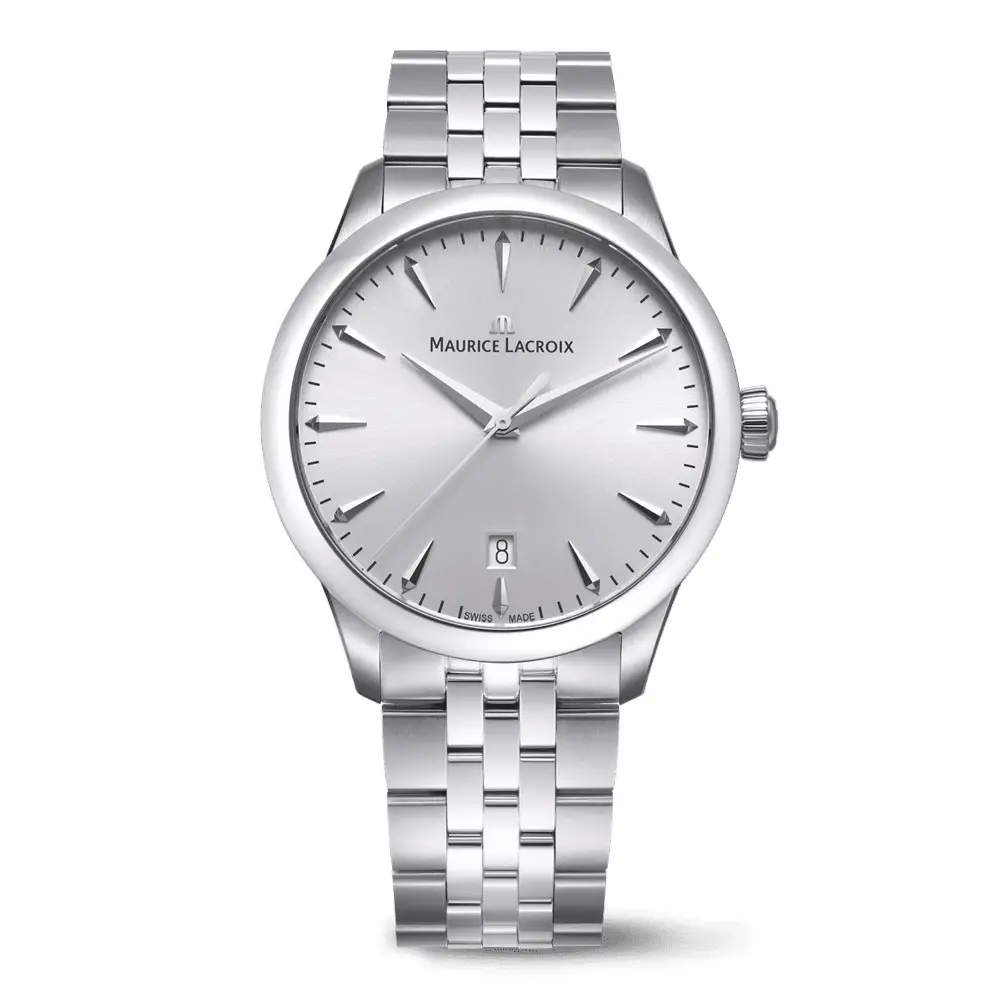 Ein silberfarbenes Edelstahlarmband mit Faltschließe rundet das elegante Erscheinungsbild ab. Die Maurice Lacroix 1975 Quartz 39mm ist die perfekte Wahl für Männer mit Sinn für klassische Ästhetik, Qualität und Stil.