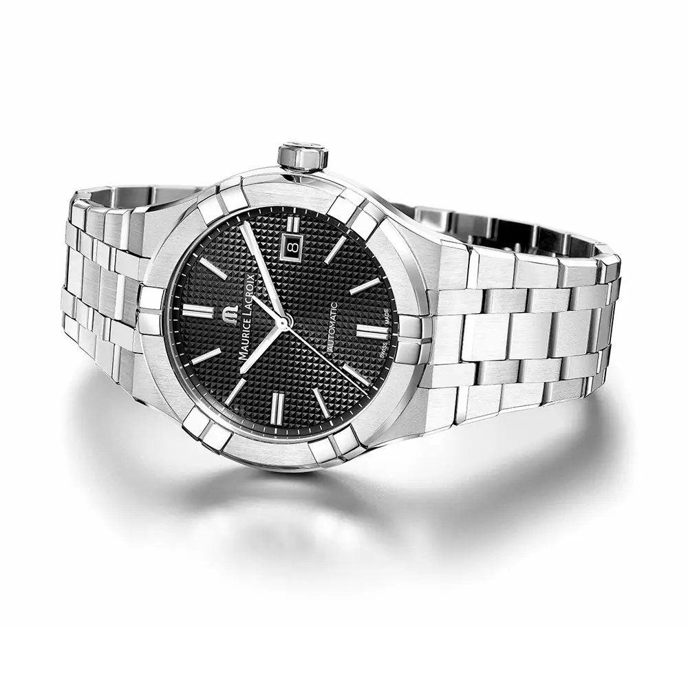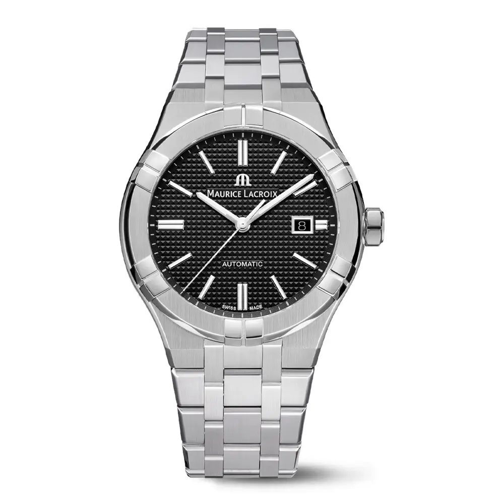 Aikon ist die Flaggschiff-Kollektion von Maurice Lacroix und verkörpert moderne sportliche Eleganz mit einer unverwechselbaren visuellen Identität. Sie ist vom ikonischen Modell Calypso aus den 1990er-Jahren inspiriert, wurde aber in einer zeitgemässen Form neu interpretiert, die sich durch klare Linien, architektonisches Design und ein integriertes Armband - eines der Hauptmerkmale der Kollektion - auszeichnet.