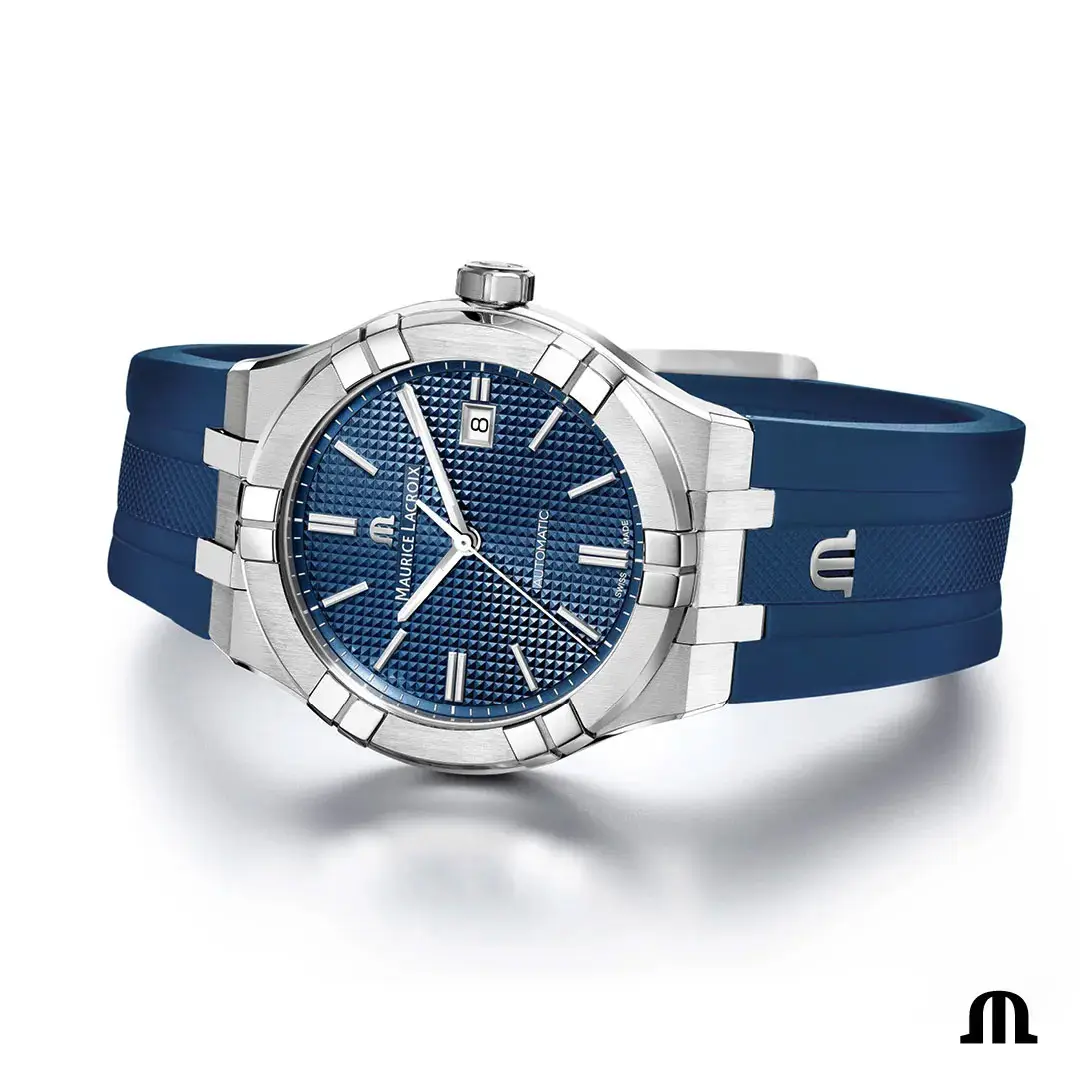 Aikon ist die Flaggschiff-Kollektion von Maurice Lacroix und verkörpert moderne sportliche Eleganz mit einer unverwechselbaren visuellen Identität. Sie ist vom ikonischen Modell Calypso aus den 1990er-Jahren inspiriert, wurde aber in einer zeitgemässen Form neu interpretiert, die sich durch klare Linien, architektonisches Design und ein integriertes Armband - eines der Hauptmerkmale der Kollektion - auszeichnet.