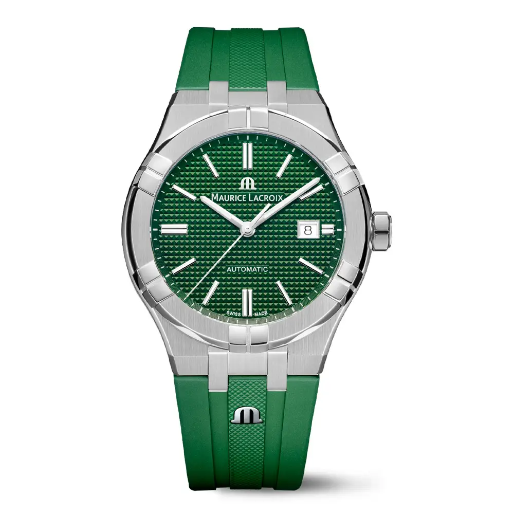 Die Maurice Lacroix Aikon Automatic 42mm AI6008-SS000-630-5 vereint moderne Eleganz, sportlichen Charakter und schweizerische Uhrmacherkunst in perfekter Harmonie. Mit ihren markanten grünen Akzenten ist diese Uhr sowohl funktional als auch stilvoll.