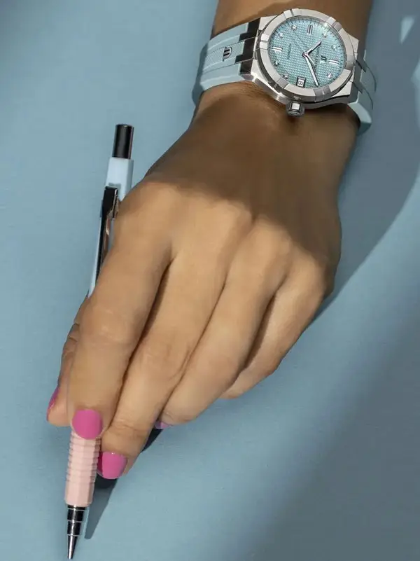 Aikon ist die Flaggschiff-Kollektion von Maurice Lacroix und verkörpert moderne sportliche Eleganz mit einer unverwechselbaren visuellen Identität. Sie ist vom ikonischen Modell Calypso aus den 1990er-Jahren inspiriert, wurde aber in einer zeitgemässen Form neu interpretiert, die sich durch klare Linien, architektonisches Design und ein integriertes Armband - eines der Hauptmerkmale der Kollektion - auszeichnet.