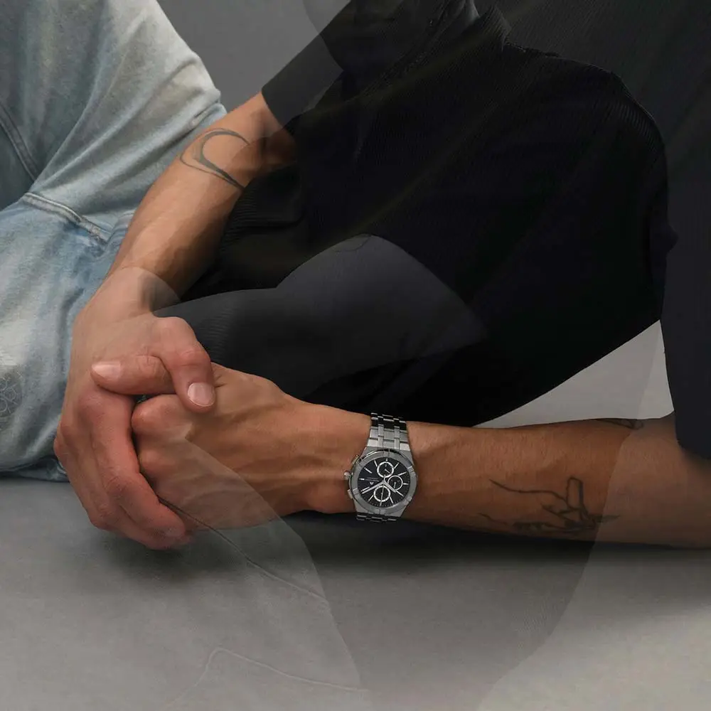 Aikon ist die Flaggschiff-Kollektion von Maurice Lacroix und verkörpert moderne sportliche Eleganz mit einer unverwechselbaren visuellen Identität. Sie ist vom ikonischen Modell Calypso aus den 1990er-Jahren inspiriert, wurde aber in einer zeitgemässen Form neu interpretiert, die sich durch klare Linien, architektonisches Design und ein integriertes Armband - eines der Hauptmerkmale der Kollektion - auszeichnet.