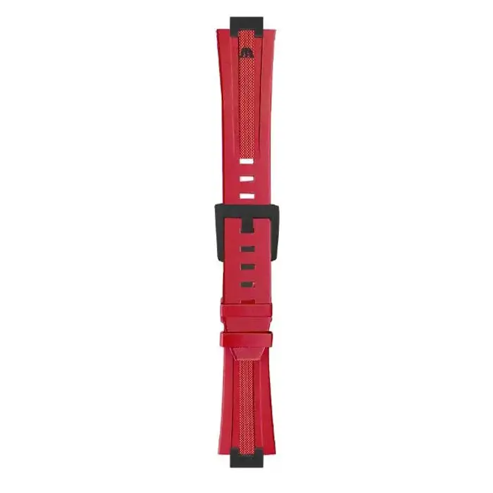 Zur Uhr gehören zwei Kautschukarmbänder – eines in Schwarz, eines in Rot – die mit einem Schnellwechselsystem ausgestattet sind, sodass der Look der Uhr leicht angepasst werden kann.