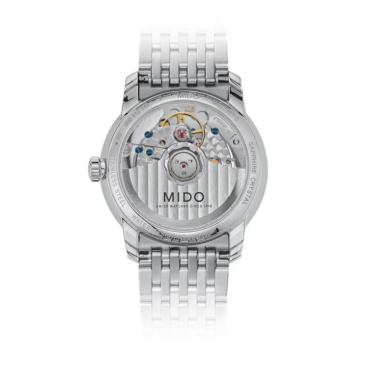 Die Marke Mido hat sich eine starke Identität geschaffen, indem sie die traditionelle Schweizer Uhrmacherkunst mit Inspirationen aus der Architektur verbindet. Die Kollektionen orientieren sich oft an ikonischen Gebäuden aus der ganzen Welt, was sich in ihrem Design, ihren Proportionen und ihrer Ästhetik widerspiegelt. Mido hat sich auf mechanische Uhren mit zuverlässigen Automatikwerken spezialisiert, die oft über eine lange Gangreserve von bis zu 80 Stunden verfügen (Kaliber Powermatic 80).