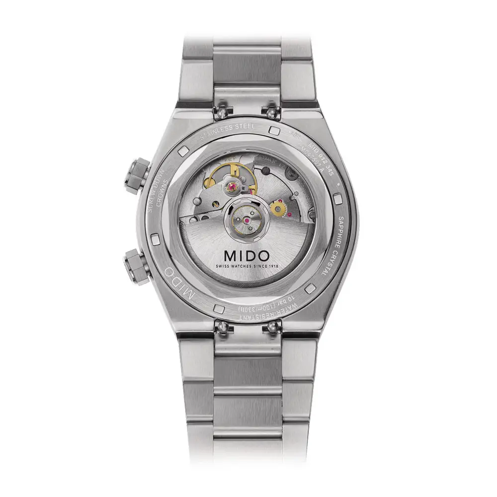 Im Inneren arbeitet ein zuverlässiges Mido Automatic ETA mechanisches Automatikwerk mit einer Gangreserve von ca. 72 Stunden, was Komfort auch bei seltenerem Tragen bietet.