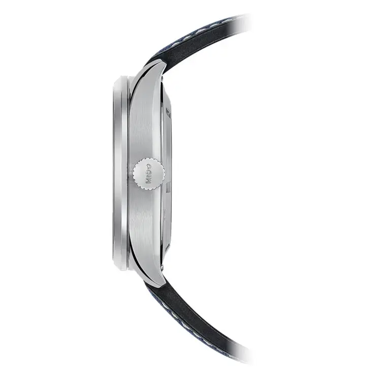Die Mido Multifort M ist ein sportlich gestaltetes Modell, das robuste Konstruktion, modernes Design und Schweizer Präzision vereint. Das runde Gehäuse mit einem Durchmesser von 42 mm besteht aus hochwertigem Edelstahl und wird durch ein robustes Saphirglas geschützt, das hervorragende Ablesbarkeit und Kratzfestigkeit bietet.