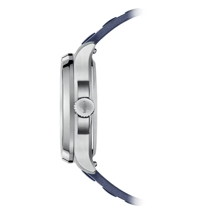 Die Uhr ist bis 100 Meter (10 bar) wasserdicht und wird an einem blauen Kautschukarmband mit Schnellwechselsystem getragen. Eine gelungene Kombination aus Retro-Design, technischer Finesse und Schweizer Qualität macht die Multifort TV Big Date zum idealen Begleiter für jeden Tag.