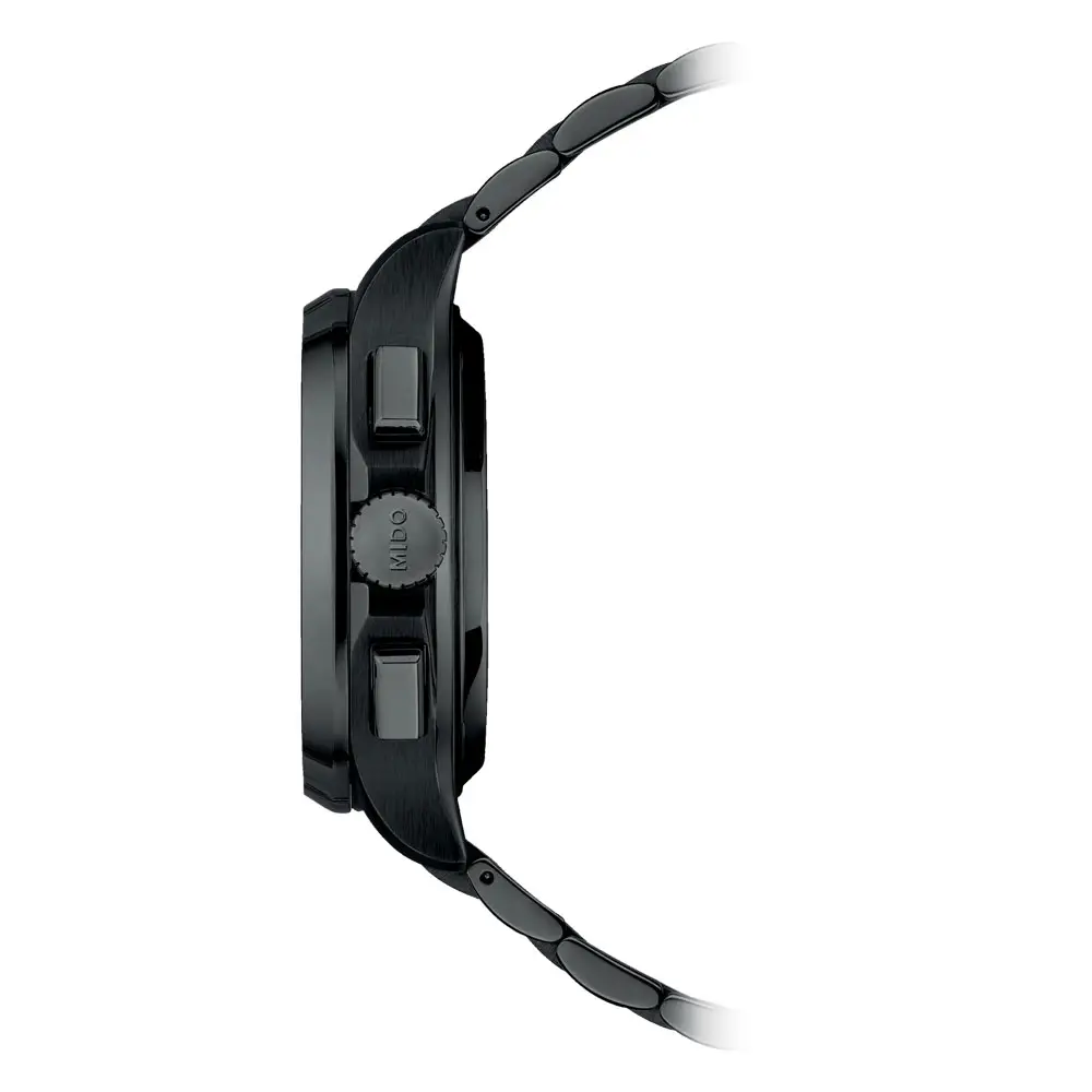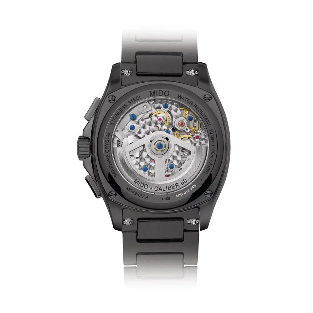 Im Inneren arbeitet das Automatikkaliber 60 mit einer Gangreserve von bis zu 60 Stunden und einer innovativen Nivachron™-Magnetismusfeder. Der Chronograph bietet eine präzise Zeitmessung mit Stoppuhrfunktion, Datumsanzeige und kleiner Sekunde. Die ausgewogene Anordnung der Hilfszifferblätter und die präzise Bedienung unterstreichen die Schweizer Uhrmacherqualitäten der Marke Mido.