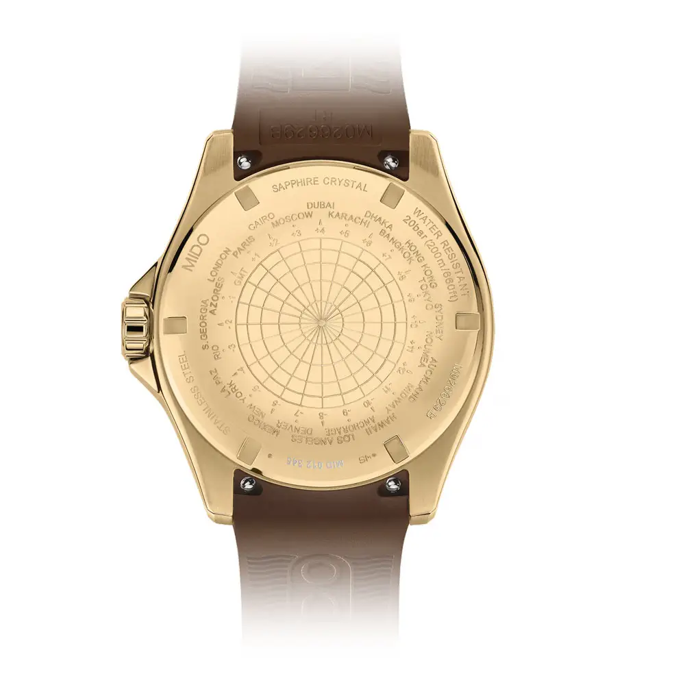 Im Inneren der Uhr arbeitet ein automatisches Mido-Kaliber 80 mit einer Gangreserve von bis zu 80 Stunden und einer antimagnetischen Nivachron™-Spirale, die Genauigkeit und Zuverlässigkeit auch unter schwierigen Bedingungen gewährleistet. Dieses Modell ist die ideale Wahl für Wassersportler und alle, die eine zuverlässige und stilvolle Uhr für den Alltag und die Reise suchen.