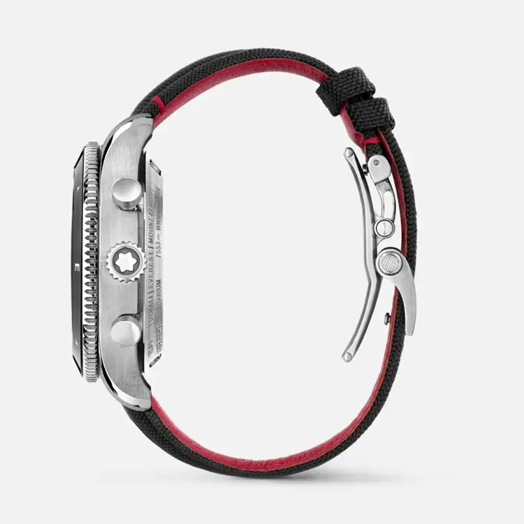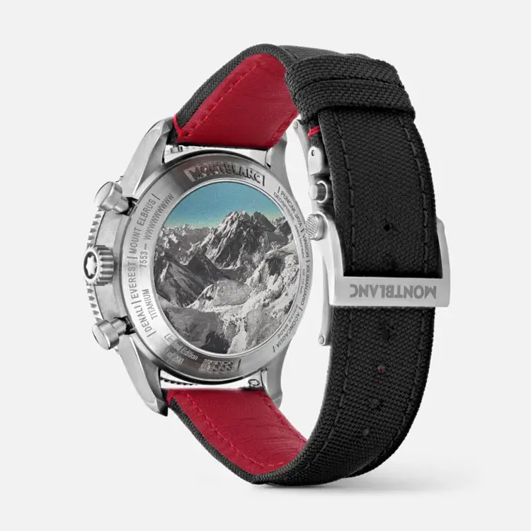 Im Inneren arbeitet das automatische Kaliber Montblanc MB 29.27 mit einer Gangreserve von 46 Stunden und COSC-Zertifizierung für höchste Präzision. Mit einer Wasserdichtigkeit von 10 ATM (100 m) und einem gravierten Bergmotiv auf dem Titanboden verkörpert diese limitierte Edition von 290 Stück Montblancs Philosophie – Leistung, Handwerkskunst und zeitlosen Luxus in perfekter Harmonie.