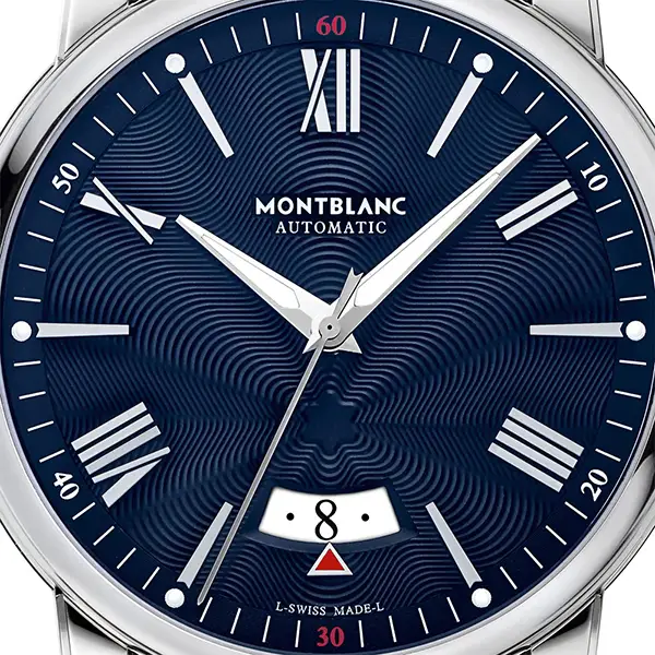 Das blaue Alligatorlederarmband mit klassischer Dornschließe unterstreicht den eleganten Gesamteindruck und bietet hohen Tragekomfort. Mit einer Wasserdichtigkeit von 5 ATM (50 m) eignet sich die Uhr für alle täglichen Aktivitäten. Die Montblanc 4810 Automatic Date ist der perfekte Begleiter für alle, die Stil, Qualität und feine, aber markante Details in einer Uhr suchen.