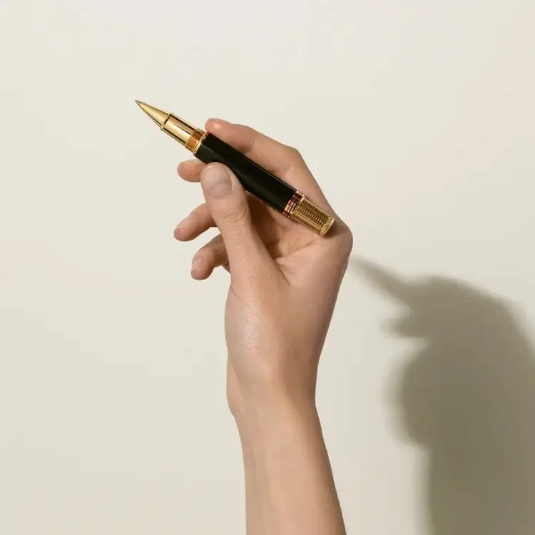 Der Clip in Form eines Cocktailglases und die vergoldeten Details verweisen auf die legendären Partys des Romans. Die Gravur „So we beat on, boats against the current“ zitiert den berühmten Schlusssatz des Buches. Das ausgewogene Design bietet ein fließendes, elegantes Schreibgefühl.