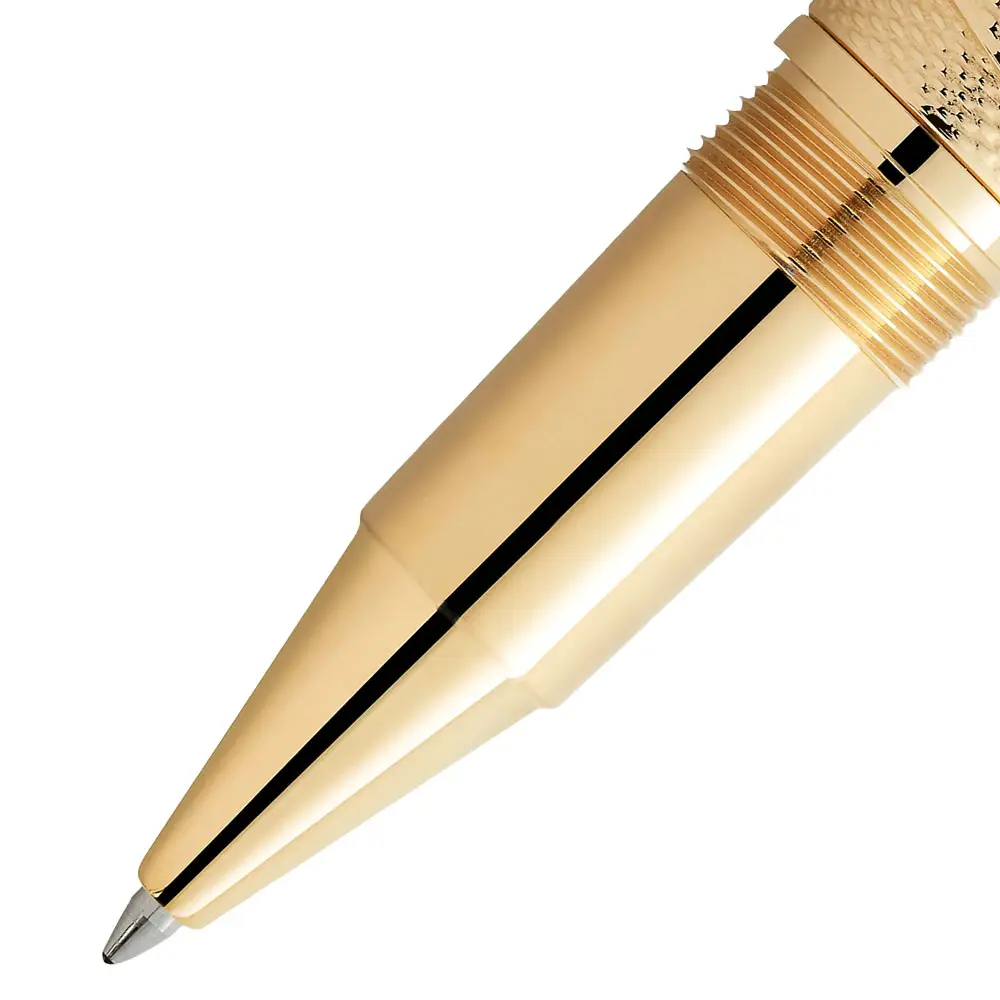 Jedes Schreibgerät dieser Kollektion spiegelt die einzigartige Geschichte einer bestimmten Persönlichkeit wider - von den Designelementen, die Schlüsselmomente in ihrem Leben symbolisieren, bis hin zu den raffinierten Details und hochwertigen Materialien. Das Montblanc Emblem in Form eines schneebedeckten Gipfels und die präzise Handwerkskunst, die jedem Stück seinen außergewöhnlichen Charakter verleiht.