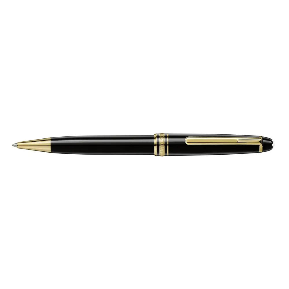 Der ikonische Montblanc Meisterstück Classique steht für zeitlose Eleganz und höchste Handwerkskunst. Das Gehäuse aus edlem schwarzem Harz mit vergoldeten Details verleiht diesem Schreibgerät seinen unverwechselbaren Charakter.