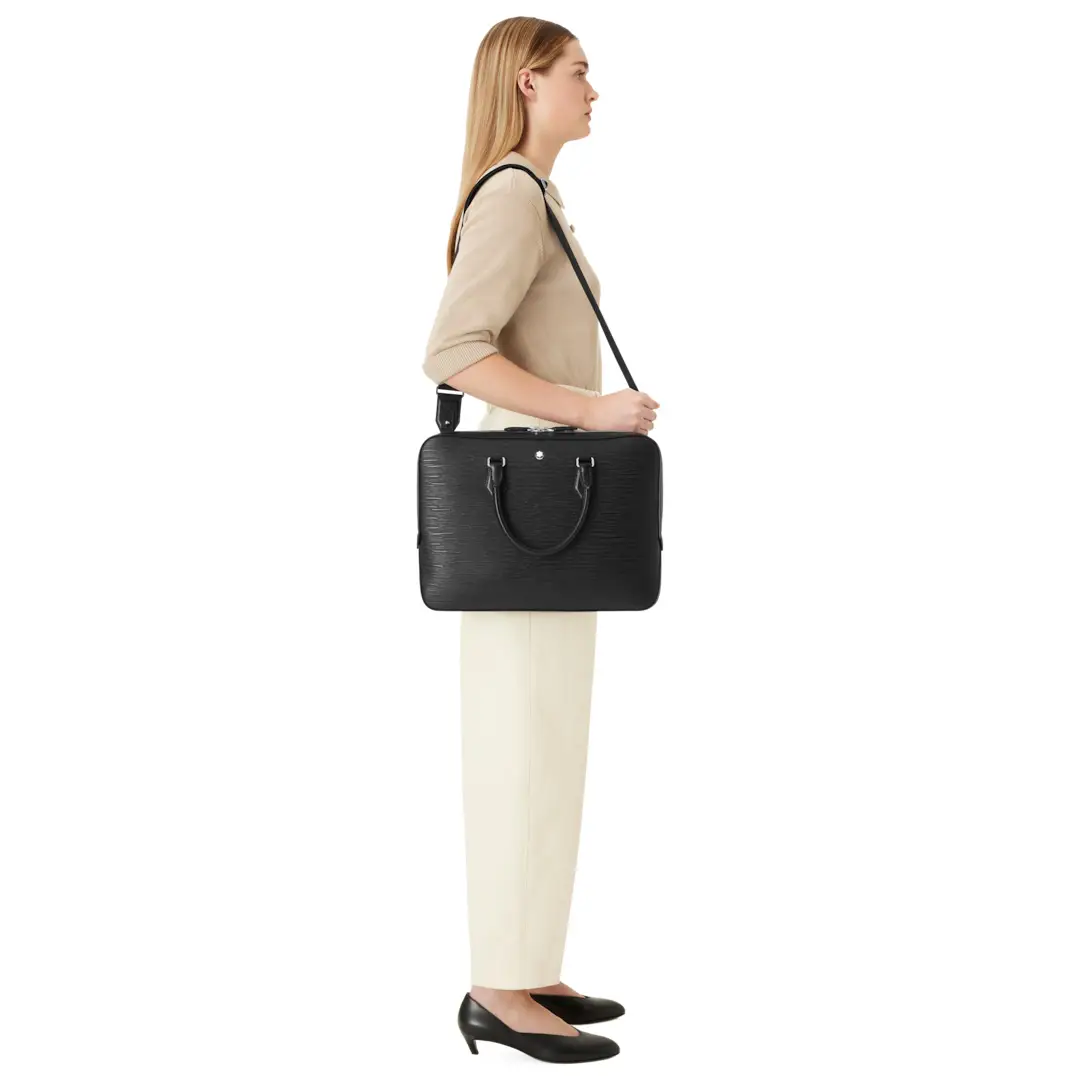 Das Außendesign besticht durch minimalistischen Chic: glattes Leder, klare Nähte und ein zurückhaltendes Logo reflektieren die elegante Ästhetik dieses Modells. Ideal für Geschäftsleute, die in jeder Hinsicht Stil und Qualität ausstrahlen. Der verstellbare Schulterriemen sowie das stabile Tragegriff ermöglichen flexibles Tragen – ob lässig über der Schulter oder klassisch in der Hand. Die Meisterstück 130912 ist mehr als nur eine Tasche – sie repräsentiert Ambition, Stil und Ordnung.