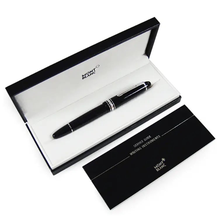Das Gehäuse und die Kappe bestehen aus schwarzem Edelharz, ergänzt durch einen platinbeschichteten Clip mit individueller Seriennummer. Das glänzende Finish verleiht Tiefe und Ausgewogenheit, während der eingravierte Schriftzug „Montblanc“ auf der Kappe Authentizität und Tradition unterstreicht. Mit den Maßen 145,8 × 15,5 mm liegt das Schreibgerät perfekt in der Hand.