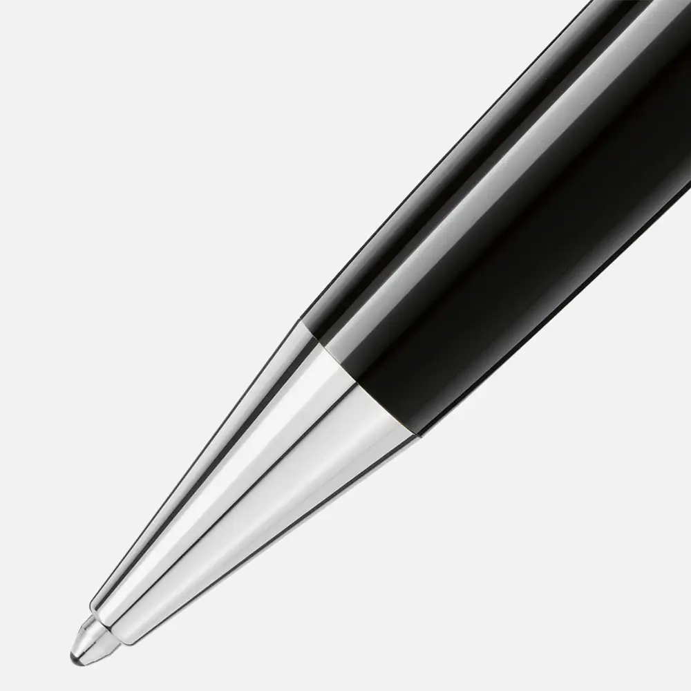 Schaft und Kappe bestehen aus schwarzem Edelharz, das für seine Tiefe und seinen Glanz bekannt ist. Der platinbeschichtete Clip verleiht dem Design eine edle Akzentuierung. Mit den Maßen 141,7 × 13,7 mm bietet das Schreibgerät perfekte Balance und Komfort.