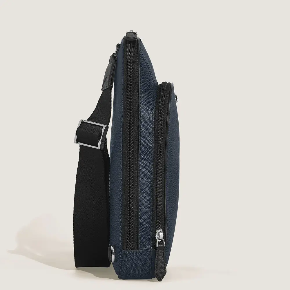 Die Montblanc Umhängetasche aus der Sartorial-Kollektion vereint moderne Funktionalität mit ikonischem Design. Gefertigt aus Saffiano-Leder (Vollnarbenleder) im eleganten Farbton Tweed Blue, überzeugt sie durch eine zeitlose, anspruchsvolle Ästhetik sowie hohe Widerstandsfähigkeit für den täglichen Gebrauch. Die kompakte Silhouette und die klaren Linien unterstreichen den luxuriösen Charakter dieses Accessoires, das sich sowohl für den urbanen Alltag als auch für Reisen eignet.