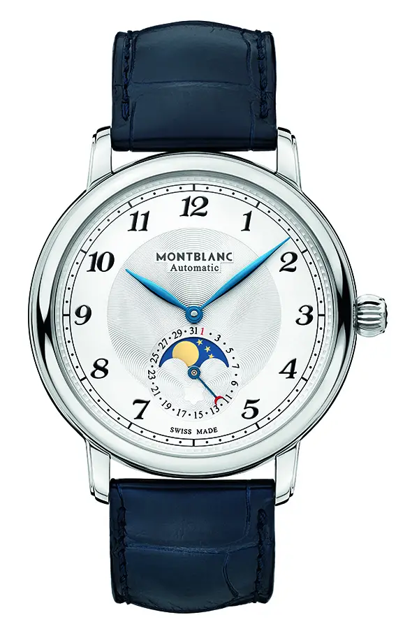 Abgerundet wird das Modell durch ein klassisches schwarzes Alligatorlederarmband mit Faltschließe, das den edlen Charakter unterstreicht. Mit einer Wasserdichtigkeit von 3 ATM (30 m) eignet sich die Uhr für den täglichen Gebrauch im Büro oder zu formellen Anlässen. Die Montblanc Star Legacy Moonphase ist eine perfekte Verbindung aus klassischer Eleganz, Uhrmachertradition und poetischer Mondphasenromantik.
