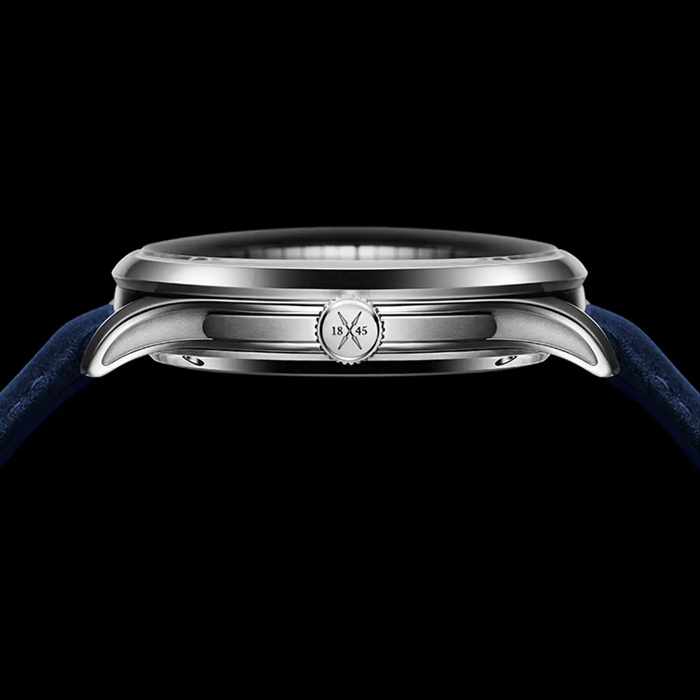 Die Eleganz betont ein blaues Lederband mit klassischer Dornschließe, das farblich auf das Zifferblatt abgestimmt ist und hohen Tragekomfort bietet. Dank der Wasserdichtigkeit von 5 ATM (50 m) bleibt die Promenade ein zuverlässiger Begleiter, sei es beim abendlichen Spaziergang am Ufer oder bei festlichen Anlässen in der Stadt.