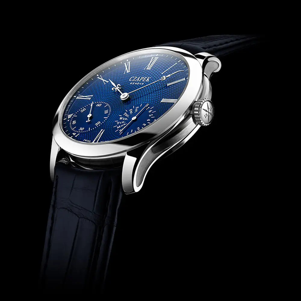 Die Czapek Quai des Bergues Sapphire Blue L richtet sich an Kenner, die tiefe Eleganz, traditionelles Handwerk und Schweizer Präzision in vollkommener Harmonie schätzen.