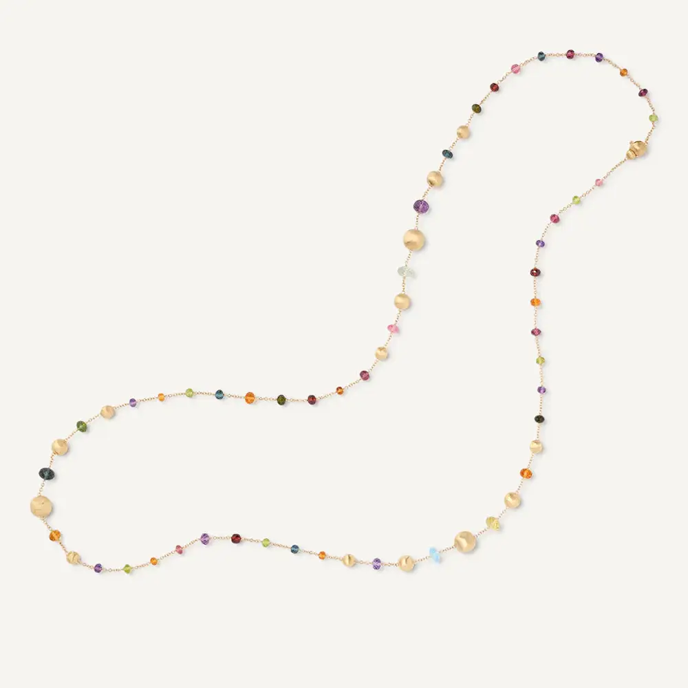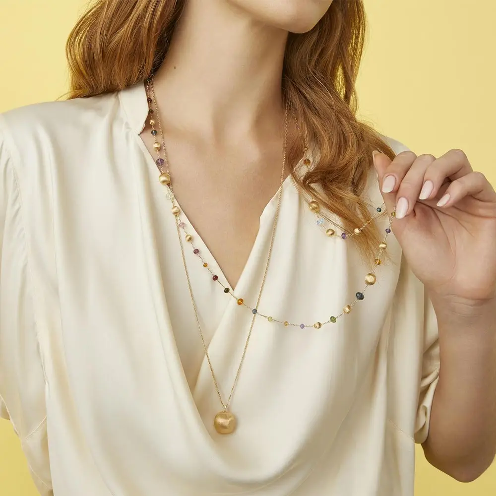 Die Halskette Marco Bicego Africa CB2230 MIX02 Y vereint italienische Handwerkskunst mit natürlicher Schönheit. Gefertigt aus 18 kt (750/1000) Gelbgold mit glänzender und matter Oberfläche, beeindruckt sie mit einer Länge von 92 cm, die elegante Leichtigkeit und Raffinesse verleiht. Jeder Abschnitt wird von Hand gefertigt – ein Markenzeichen der außergewöhnlichen Africa-Kollektion.