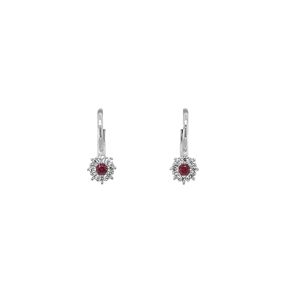 Ohrringe aus Weißgold mit Rubinen und feinen Zirkonen verziert