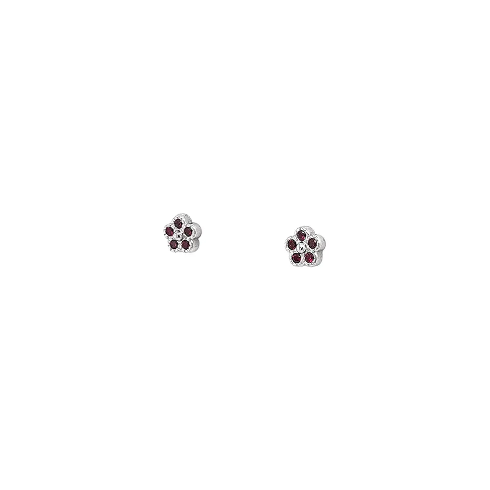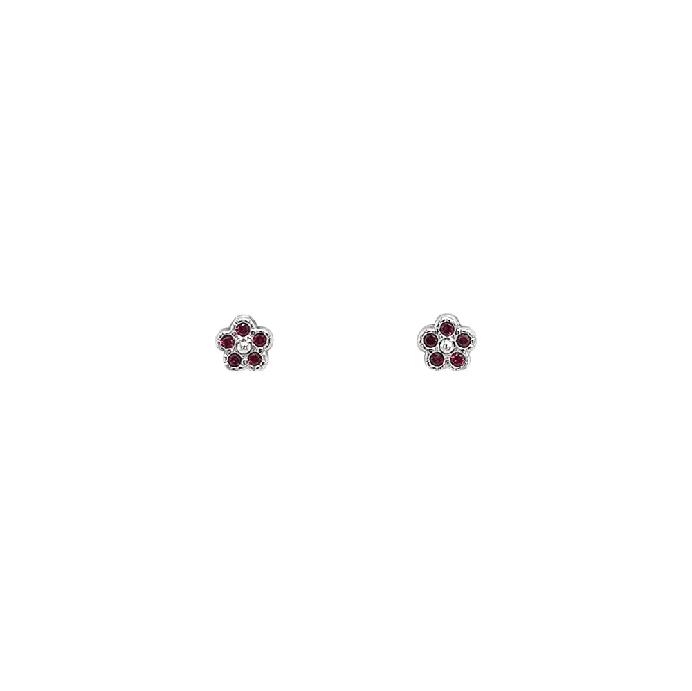Ohrringe in Form einer Blume aus Weißgold mit Rubinen
