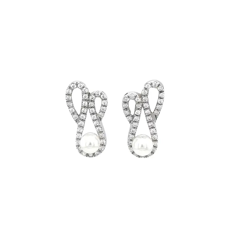 Ohrringe mit Perlen und Zirkonen aus Weißgold