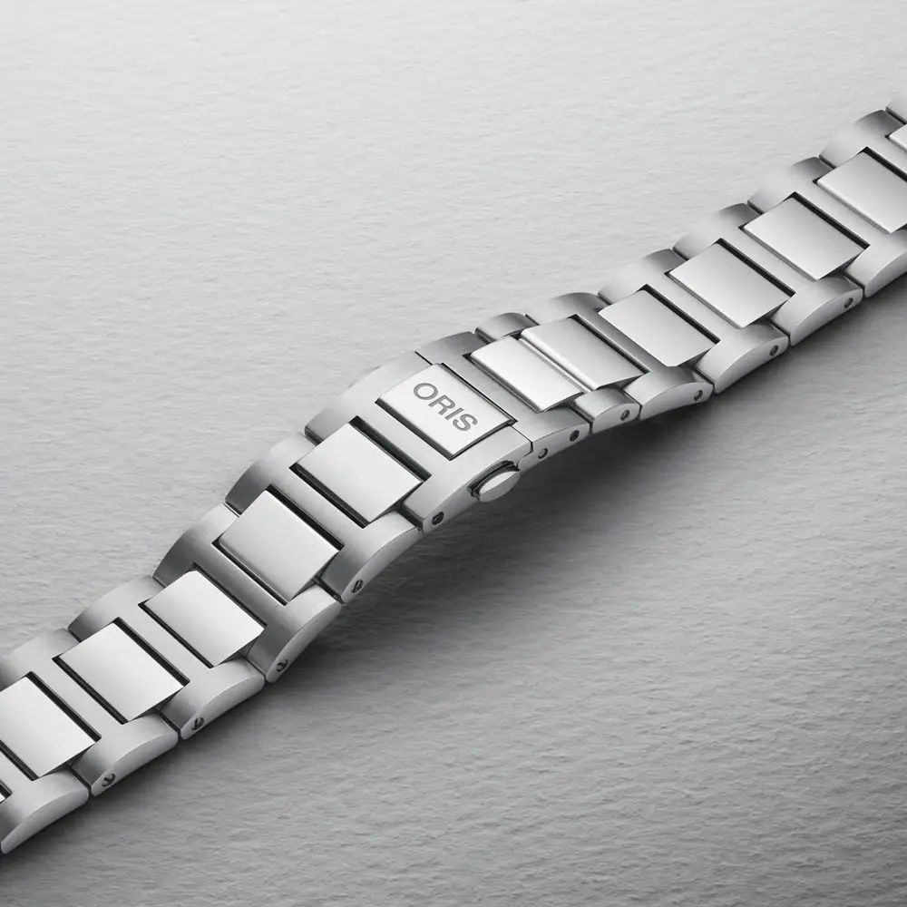 Abgerundet wird das Modell durch ein Edelstahlarmband mit H-Gliedern, das den vielseitigen Charakter der Uhr unterstreicht – ideal für den Alltag ebenso wie für formellere Anlässe. Mit einer Wasserdichtigkeit von 50 Metern ist sie bestens für den täglichen Gebrauch geeignet. Die Oris Big Crown Pointer Date ist die perfekte Wahl für Liebhaber mechanischer Uhren mit Geschichte, Charakter und der ikonischen Pointer-Date-Funktion.