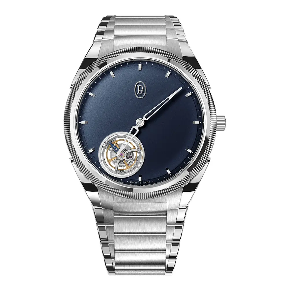 Tonda PF ist geprägt von minimalistischer Eleganz: integrierte Armbänder, fein gerändelte Platinlünette, handguillochierte Zifferblätter und schlanke Gehäuse. Die Kollektion umfasst Mikrorotor-Kaliber, Chronographen, Kalenderfunktionen und Komplikationen wie GMT Rattrapante. Alle Modelle stehen für diskreten Luxus – für Kenner, nicht für Selbstdarstellung.