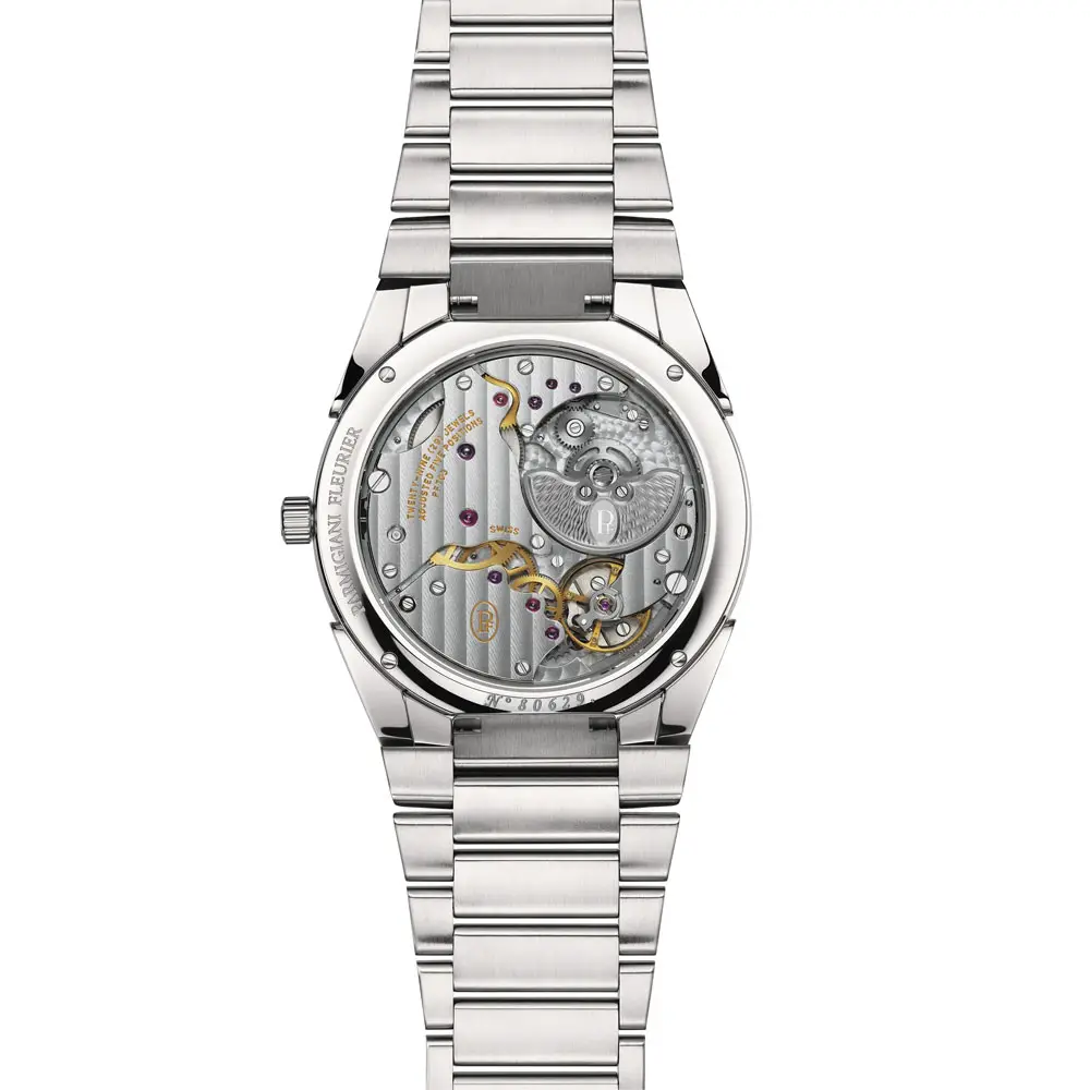 Die Uhr wird durch ein integriertes Stahlarmband ergänzt, das sich nahtlos an das Gehäuse anschließt und einen hohen Tragekomfort gewährleistet. Mit einer Wasserdichtigkeit von 100 Metern eignet sich das Modell sowohl für formelle Anlässe als auch für das Tragen im Alltag. Die Tonda PF Micro-Rotor wird alle ansprechen, die Minimalismus, feine Handwerkskunst und diskreten Luxus zu schätzen wissen.